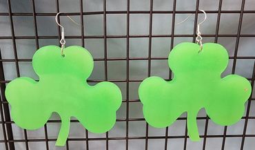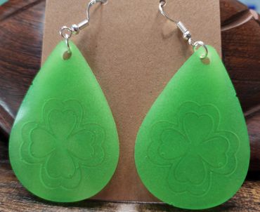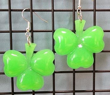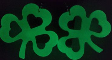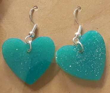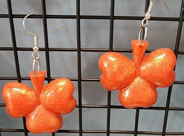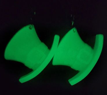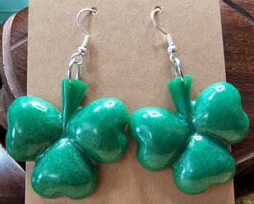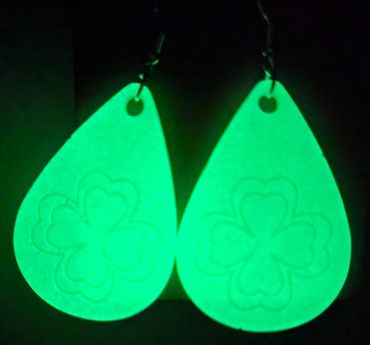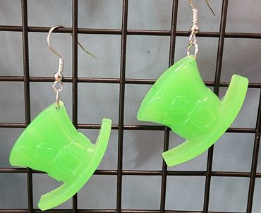 Our earrings are made from an epoxy / resin mix, and sometimes sprinkled with a material that will glow in the dark. We also use glitter, or other items to dress up the product.